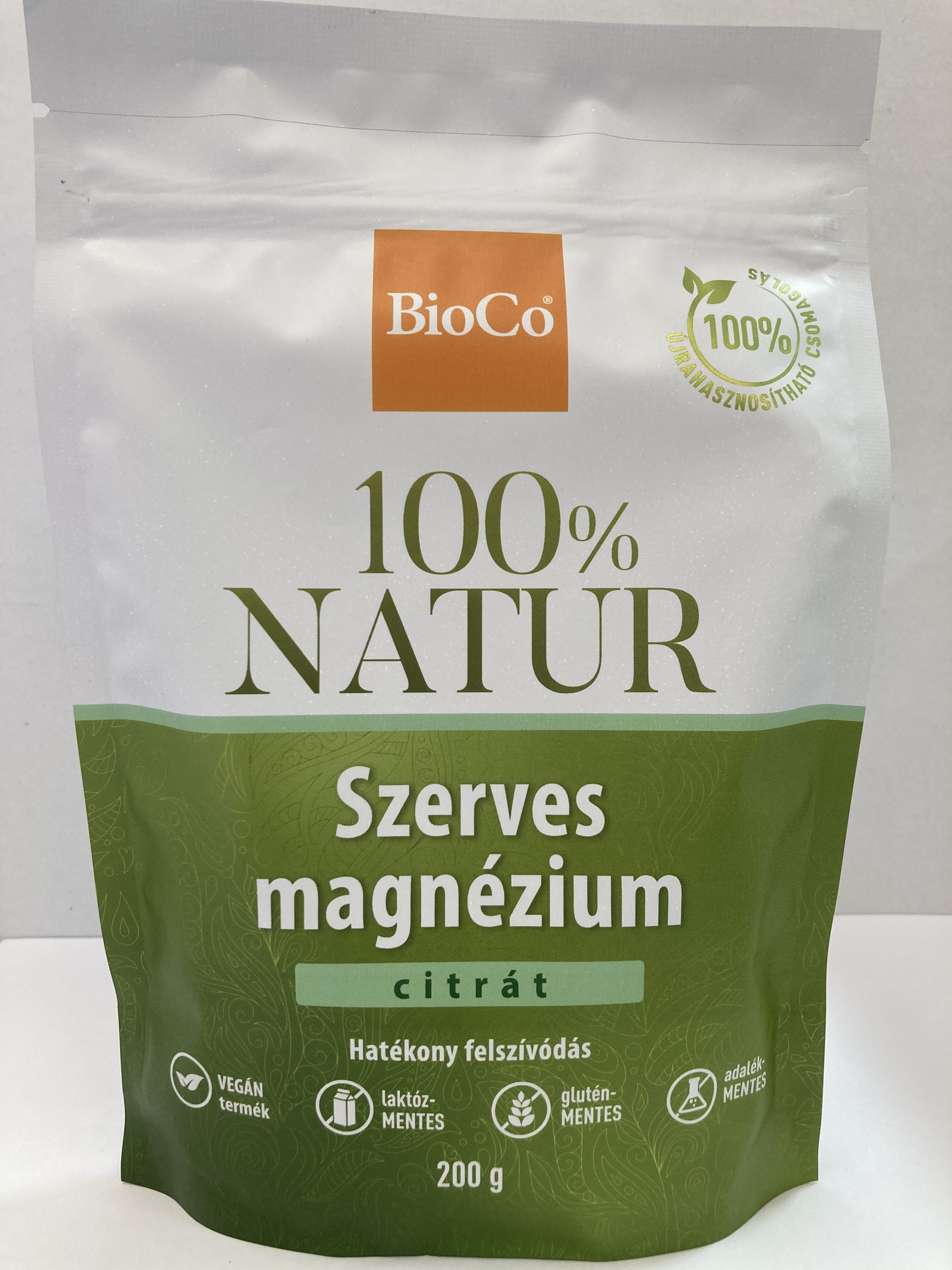 A BioCo 100% NATUR Szerves Magnézium-citrát por 100%-ban tiszta, adalékmentes, kiváló felszívódású és hasznosulású szerves magnéziumot, magnézium-citrátot tartalmaz.