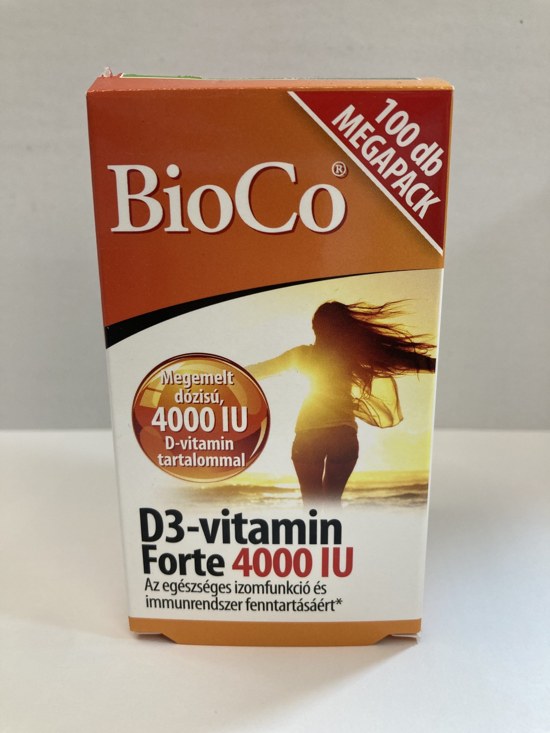 A készítmény, a BioCo D3-vitamin tablettához képest kétszeres hatóanyag-mennyiségben tartalmaz D3-vitamint (50 μg helyett 100 μg-ot tablettánként), amely 4000 IU-nak – nemzetközi egységnek – megfelelő mennyiség.