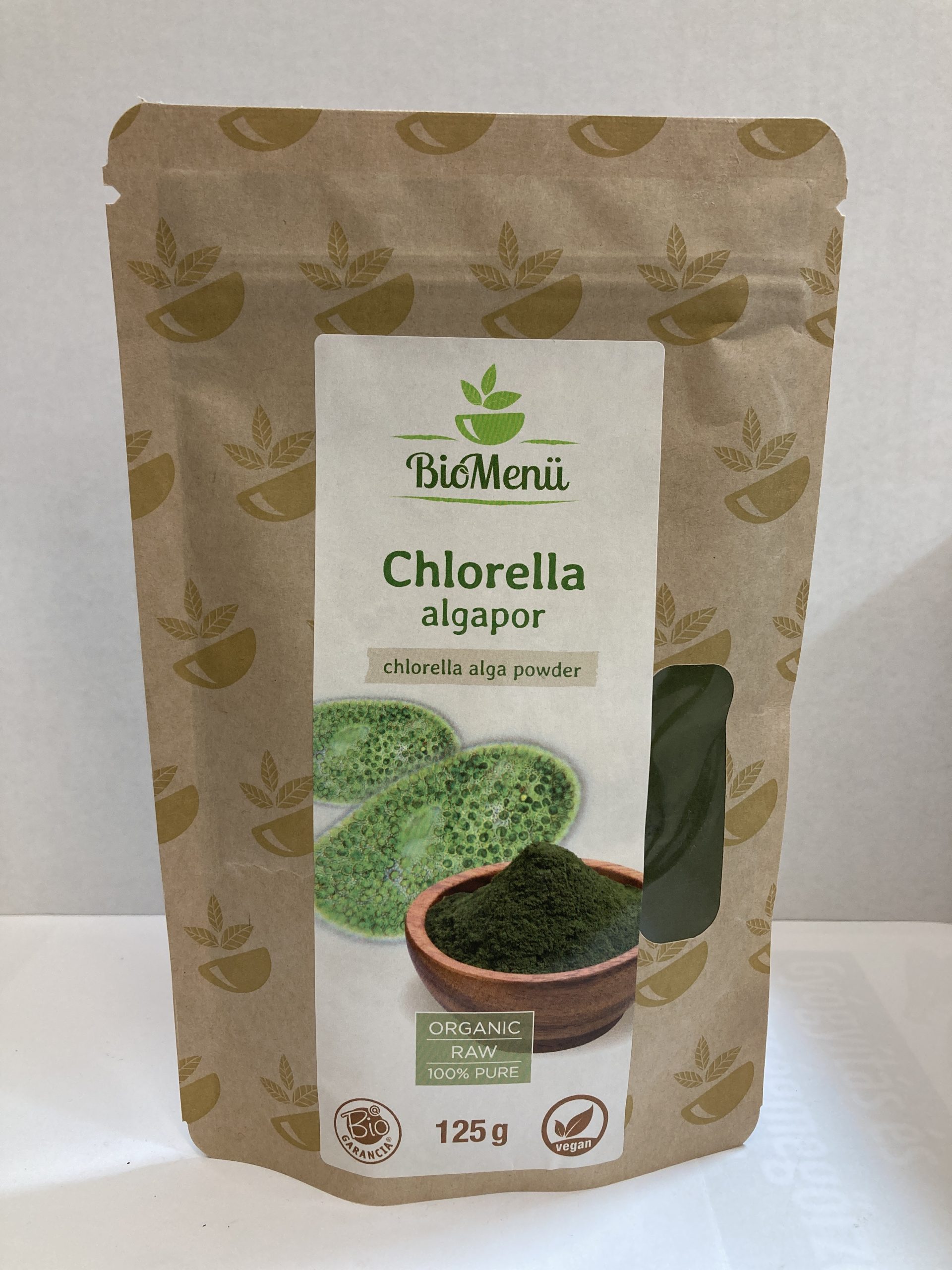 A BioMenü Chlorella algapor egy 100%-ban természetes, bio, szerves, vegán étrend-kiegészítő, amelyet a Chlorella vulgaris nevű édesvízi algából állítanak elő, és nagy tápanyagtartalma révén támogatja a szervezet méregtelenítését, lúgosítását és általános egészségét. Gazdag vitaminokban (A, B-vitaminok, C, E), ásványi anyagokban (vas, magnézium, kalcium, kálium), fehérjékben, rostokban, nukleinsavakban és klorofillban, amelyek antioxidáns hatásúak és segítenek a sejtek egészségének megőrzésében.