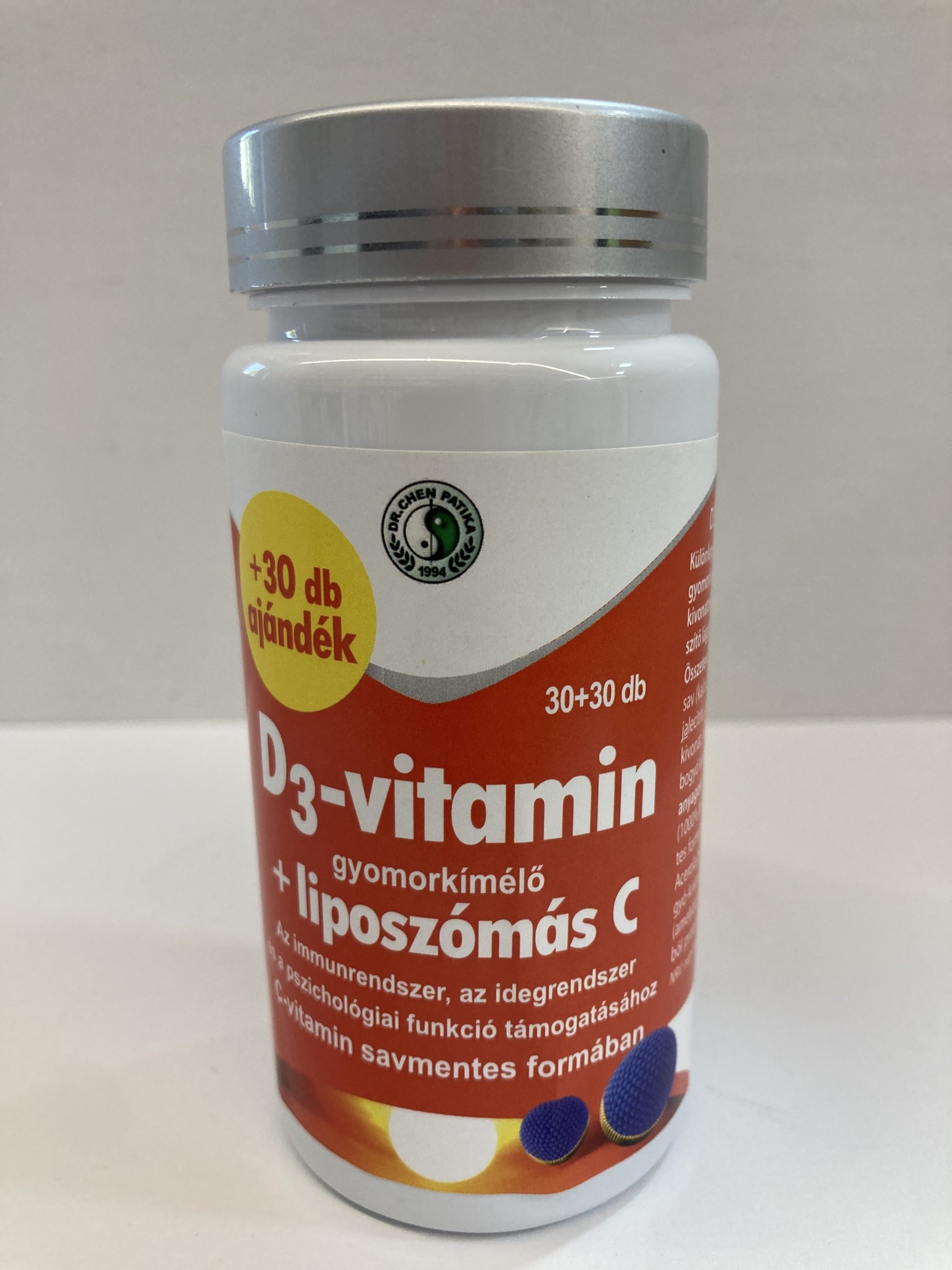 Liposzómás technológiával előállított C-vitamin, természetes csipkebogyó, acerola gyümölcs-, szőlőmag kivonattal és lecitinnel kombinált készítmény.