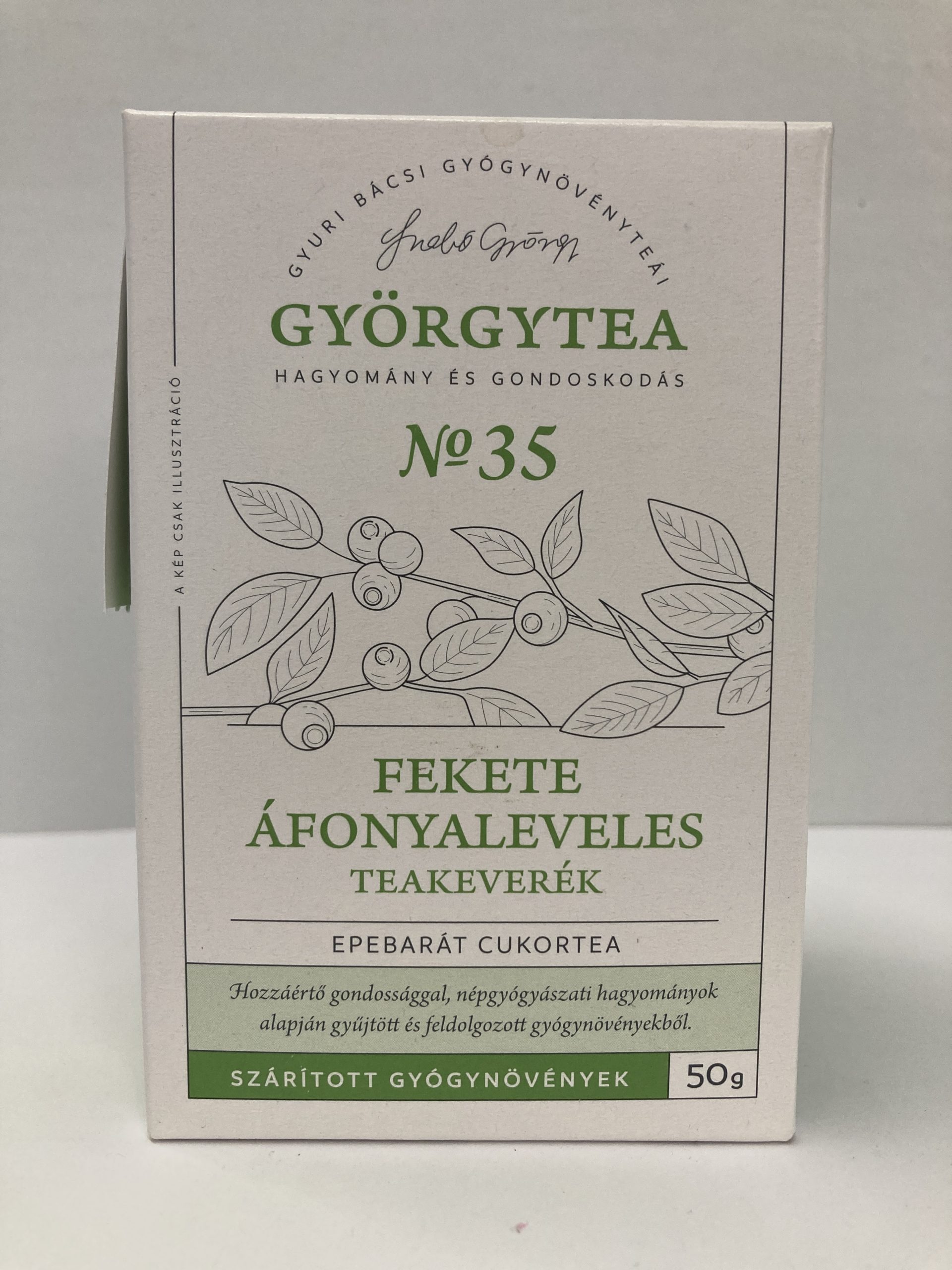 A Györgytea fekete áfonya levél a vércukorszint stabilizálására, a vérnyomáscsökkentésre, valamint a bélrendszer és a látás egészségének támogatására alkalmas gyógynövény. Különösen hasznos epeköves cukorbetegek számára az Epebarát cukortea részeként, de önmagában vagy más keverékekben is alkalmazható. A levelekből forrázással készíthető tea, melynek elkészítési módja a Györgytea weboldalán is megtalálható.