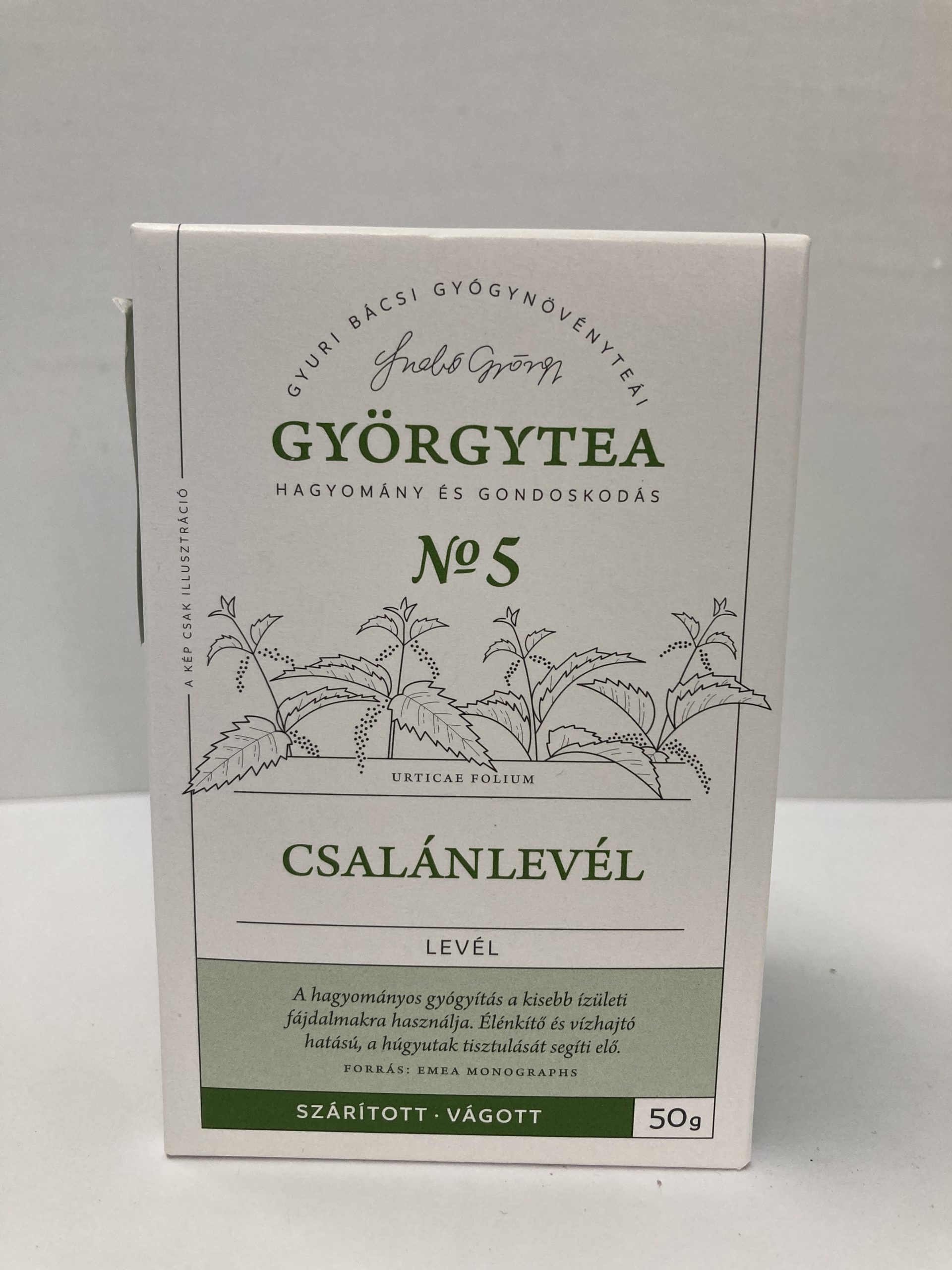 A Györgytea csalán termékei (csalálevél, csalánleveles teakeverék, csalán-komplex kapszula, csalánleveles alkoholos kivonat) a gyógynövények sokoldalú hatásait használják ki, különösen a vértisztító, vizelethajtó, máj- és epeproblémákra, valamint ízületi fájdalmakra és hajhullásra gyakorolt jótékony hatásai miatt. A Györgytea a csalánt használja tisztítókúrákhoz (évente 2-3 alkalommal), és javasolja a prosztata megnagyobbodás, illetve a húgyúti problémák kezelésére is.