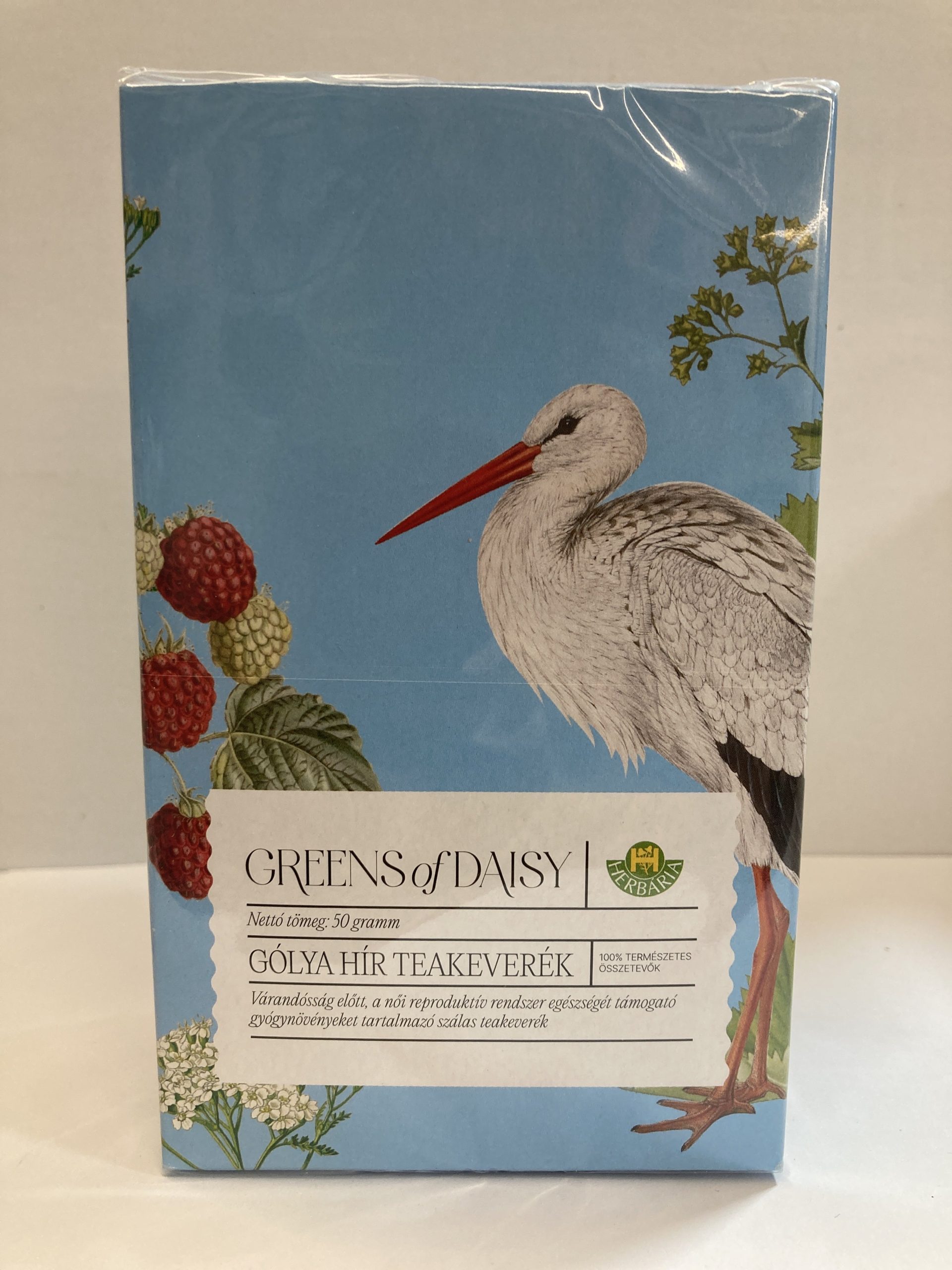 A Herbária Greens of Daisy Gólyahír teakeverék olyan gyógynövényeket tartalmaz, amelyek természetes módon segíthetnek a női hormonális egyensúly támogatásában. A cickafarkfű, palástfű, citromfű és málnalevél hozzájárulhatnak a reproduktív rendszer egészségéhez és a ciklus szabályosságához.