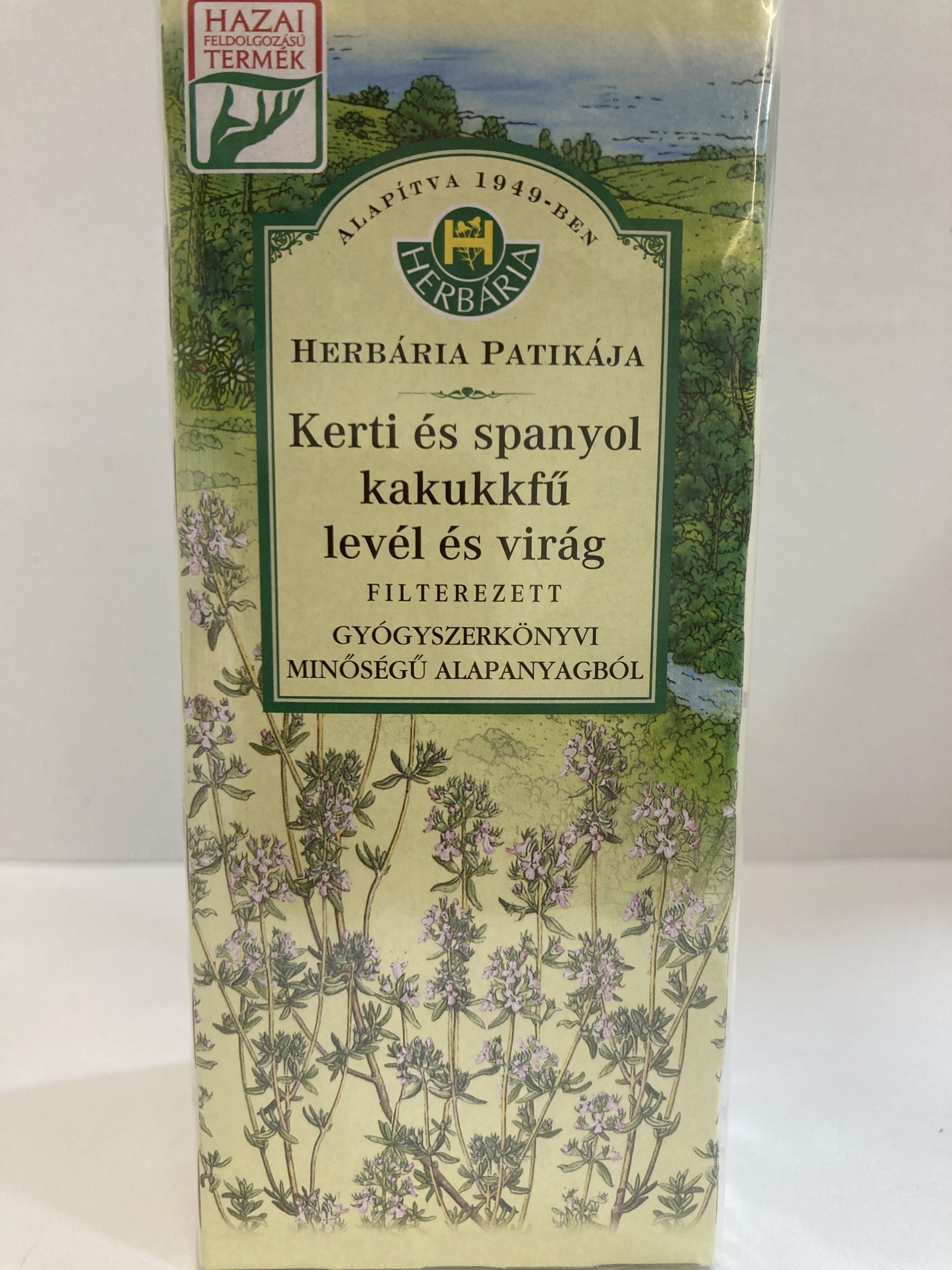 A kerti kakukkfű fő hatóanyaga, az illóolaja 20-50% timolt (kakukkfűkámfor), karvakrolt 15%, p-cimolt, kevés pinent és mentént, 15% borneolt, 15% linaloolt és cineolt, észtereket, almasavas sókat, és fitonutrienseket, triptofánt és aminosavakat is tartalmaz. Magas a kálcium-, foszfor-, kálium- és béta-karotin tartalma is.