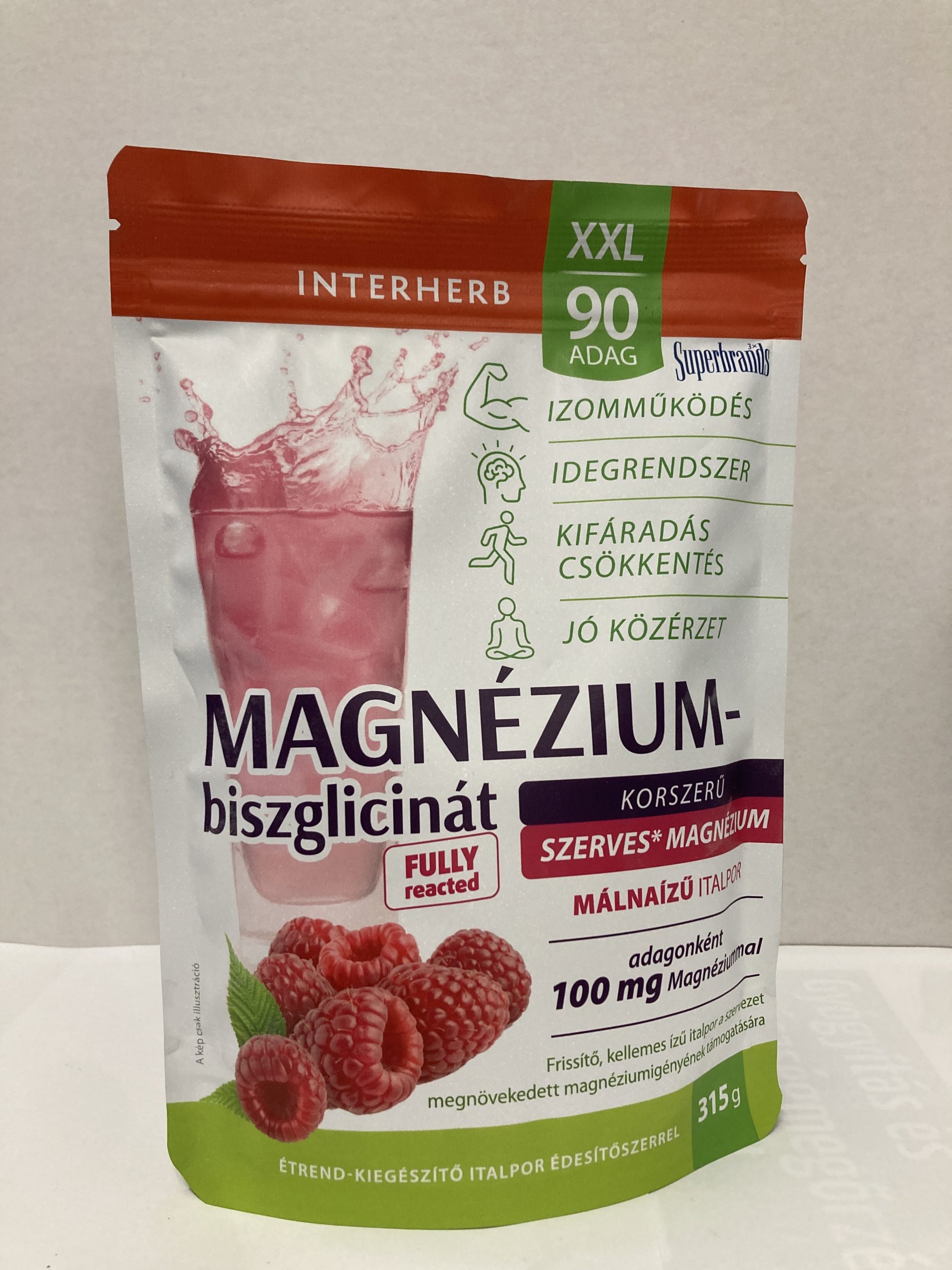 Interherb XXL Magnézium-biszglicinát Málnaízű italpor, mely egy szerves eredetű, 100% biszglicinát alapú jóízű magnézium italpor, mely szervetlen magnézium-oxid nélküli alternatívát kínál a szervezet megnövekedett magnézium igényének pótlására. A magnézium hozzájárul a fáradtság és a kifáradás csökkentéséhez, a normál izomműködéshez, az idegrendszer megfelelő működéséhez, a normál pszichológiai funkció (jó közérzet, kiegyensúlyozott idegrendszer) fenntartásához, valamint a normál csontozat és fogazat fenntartásához.