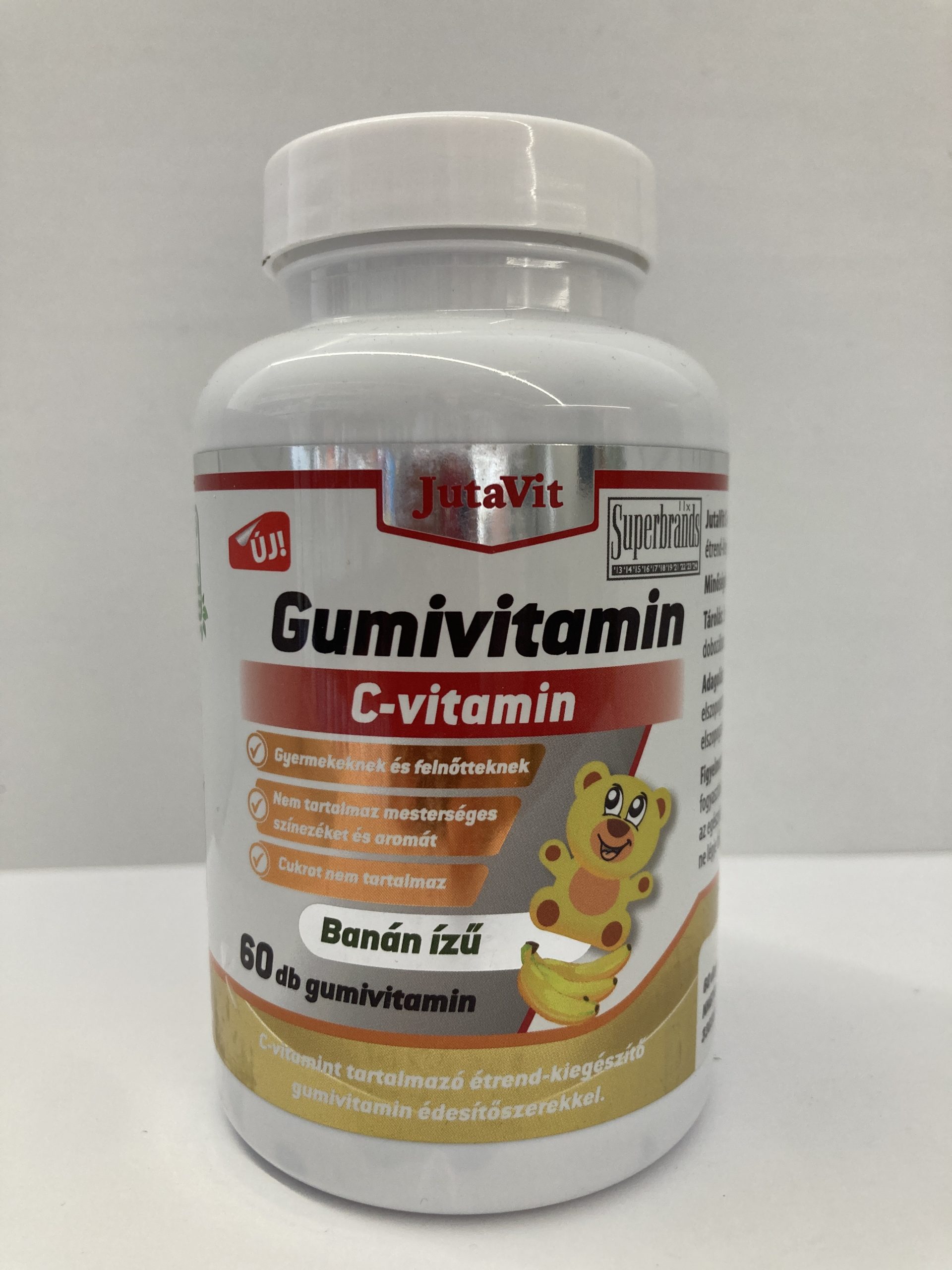 Banán ízű, C-vitamint tartalmazó étrend-kiegészítő gumivitamin édesítőszerekkel. A C-vitamin hozzájárul a fáradtság és kifáradás csökkentéséhez, az immunrendszer erősítéséhez, a normál pszichológiai funkciók fenntartásához, az immunrendszer normál működéséhez, valamint a normál kollagén képződéshez, amely szükséges a bőr, a porcok, az inak, a fogak és a fogíny normál állapotának fenntartásához.