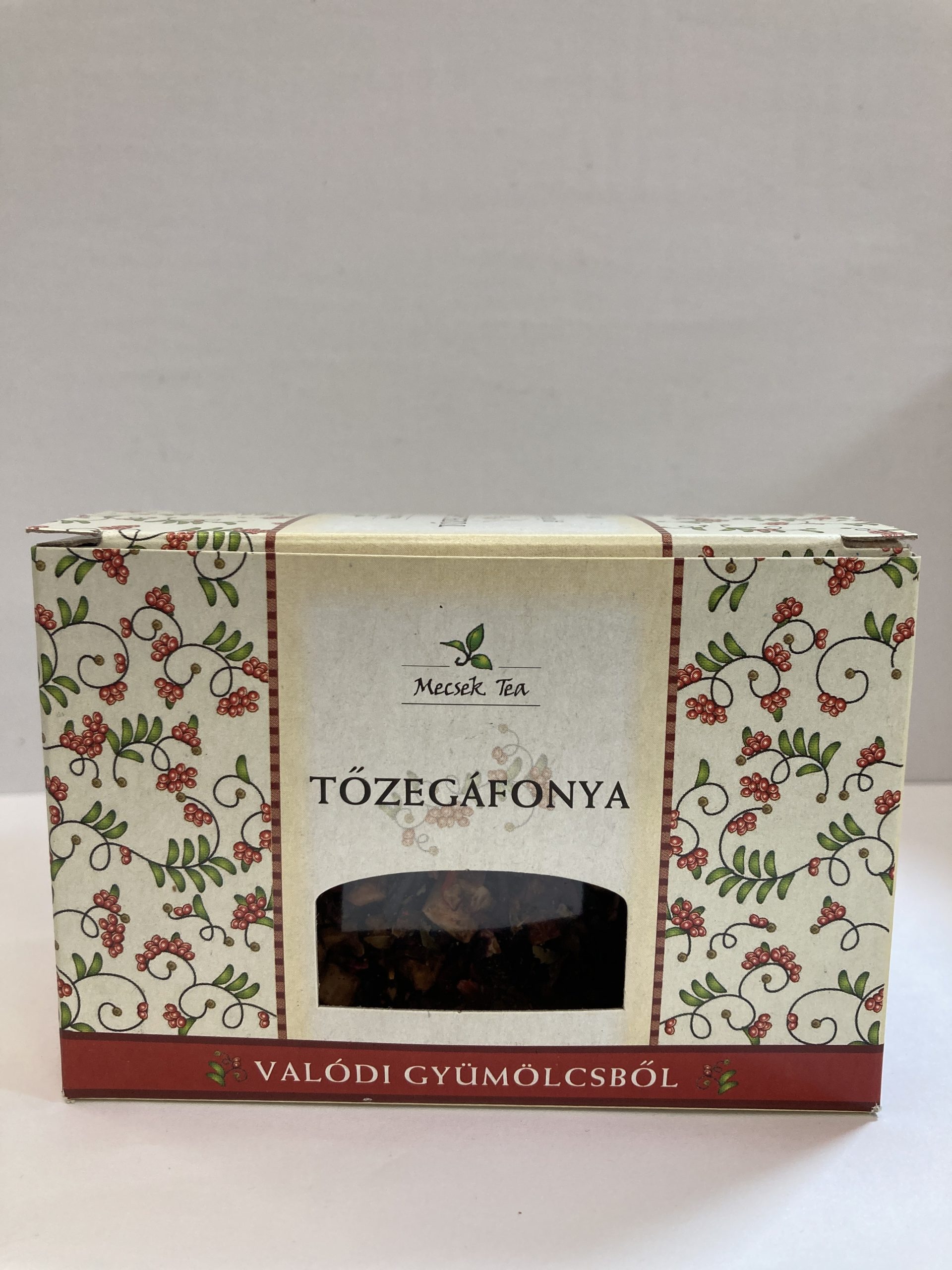 alma darabok, hibiszkuszvirág, szentjánoskenyér darabok, kandírozott ananász darabok (ananász, cukor, savanyúságot szabályozó anyag: citromsav), aroma, édes szeder levél, tőzegáfonya szeletek, sáfrány szirmok. A Mecsek gyümölcstea valódi gyümölcsből készül, élénkítő anyagot, fekete teát nem tartalmaz.