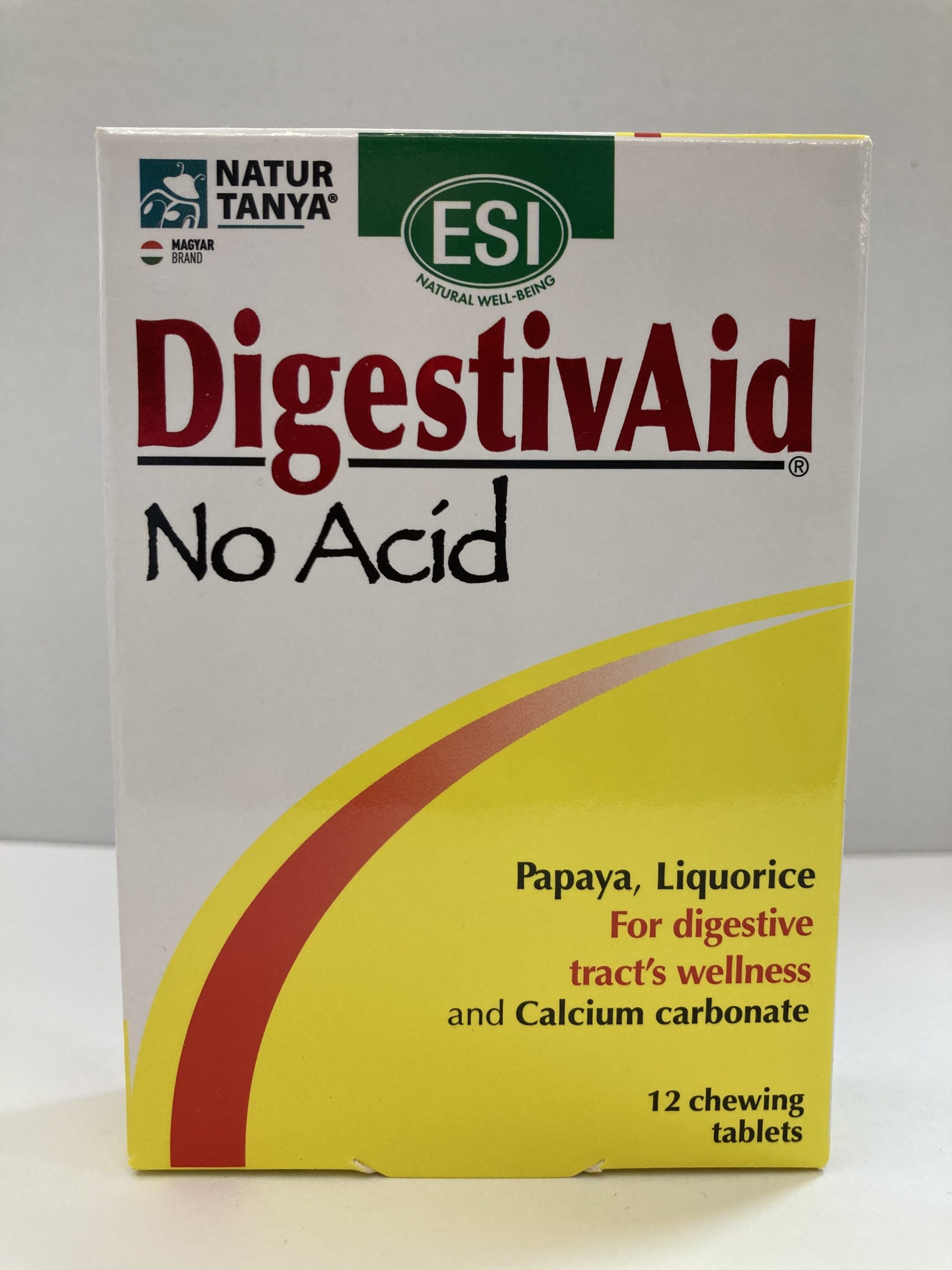 Édegyökér, kalcium, fosszilis korall, alma-pektin és liofilizált papaya tartalmú étrend-kiegészítő tabletta édesítőszerrel.