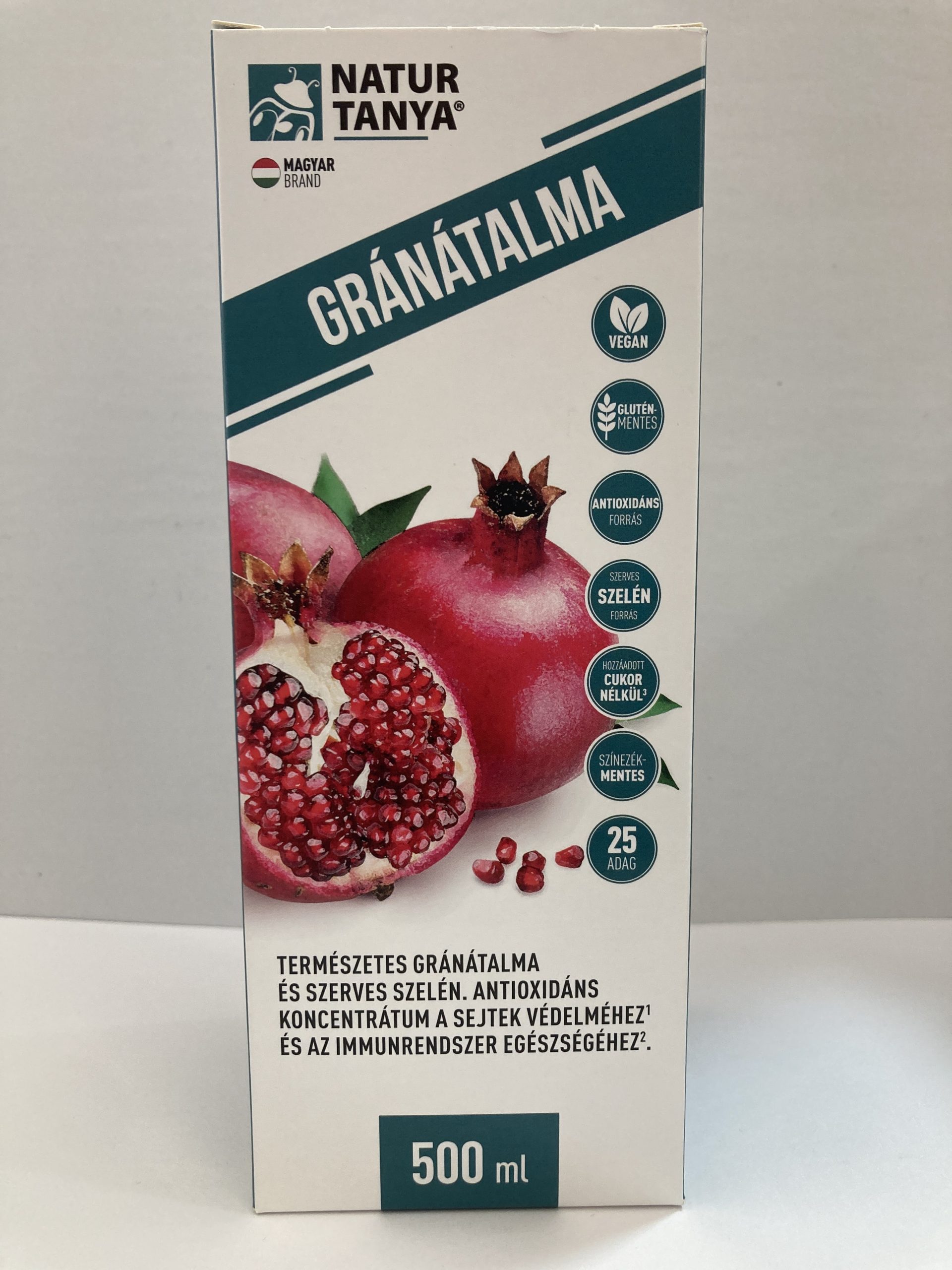 A Natur Tanya Melagrana Gránátalma koncentrátum szelénnel gránátalmalevet tartalmaz szerves szelénnel. A gránátalma fogyasztása elsősorban azért hasznos, mert nagyon sok antioxidáns található benne. Az antioxidánsok közömbösítik azokat a szabadgyököket a szervezetben, amelyek károsítanák az egészséges sejteket, és ezzel gyulladásokat, betegségeket indítanának el.